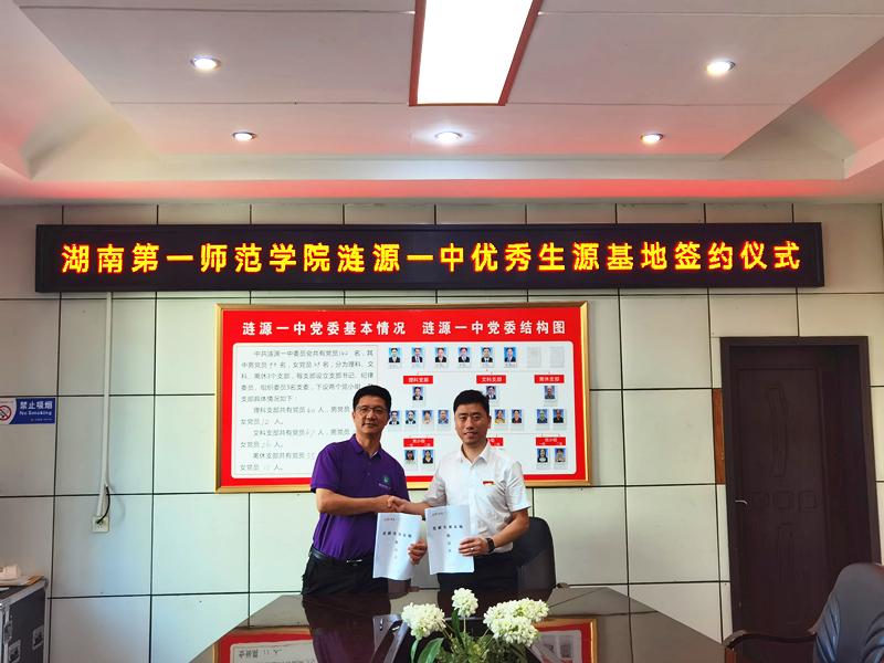 来访表示热烈欢迎,希望今后密切联系,为我校输送更多的优质生源。邹立军副院长代表学校与涟源一中签署了优质生源基地协议。