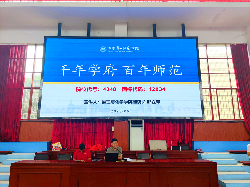 副院长邹立军和化学系教师王石功一行先后赴娄底二中、双峰一中、双峰县曾国藩学校和涟源一中等四所中学开展高考招生宣传活动。