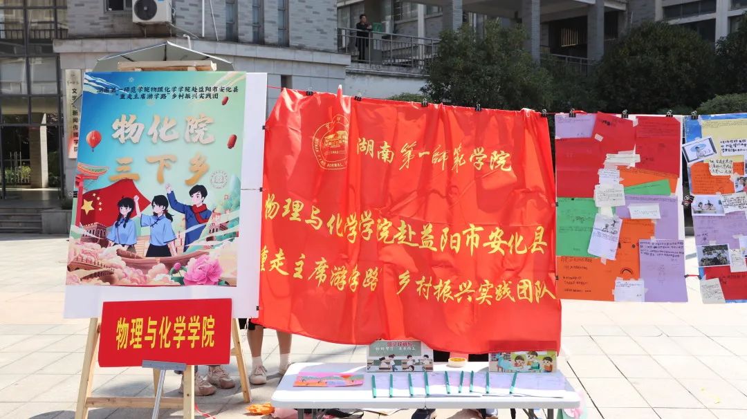 以“重走主席游学路”为主题,组成了由23名物化学子参加的实践团队,在老师的带领下奔赴湖南省益阳市安化县梅城镇,开展了为期10天的文化、科技、卫生“三下乡”社会实践活动。活动走进乡镇中学,将先进教育理念和教学器具惠及广大中小学生,宣讲了红色老兵和扶贫榜样的先进事迹,撰写了聚焦乡村教育、红色调研、科技支教等国情社情调研报告近50篇,得到了中国青年网、红网等媒体的宣传报道。