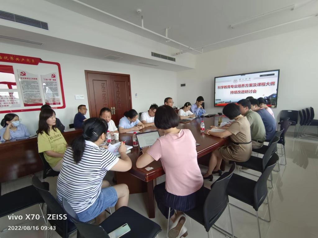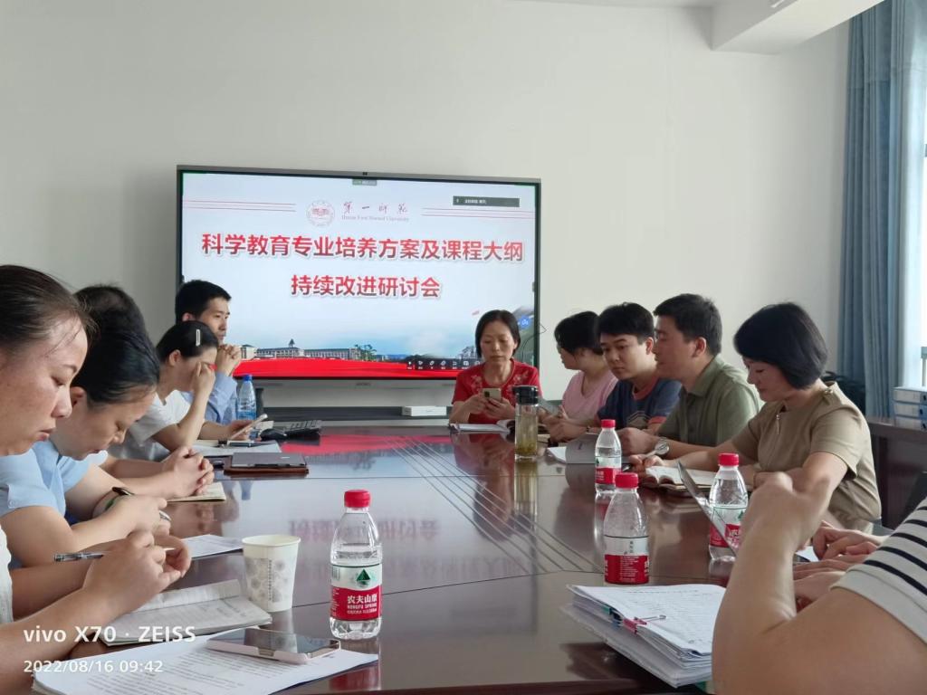 于2022年8月16日上午,在百熙楼1013召开科学教育专业培养方案及课程大纲持续改进研讨会。邹立军院长助理主持会议,参与会议的人员有许兰副院长,刘洁文、龚婧以及参与专业认证的科学教育系、物理系和化学系老师。黄文主任根据前期专家讲座的精神提出培养方案和课程大纲持续改进的几个问题。第一,目标定位需要三个必备,即服务面向、职业能力特征、人才定位。科教培养方案目标还存在定位描述不妥当,培养思路和培养目标混同等问题,此次会议全体参会人员字斟句酌研讨了培养目标的表述。第二,就达成毕业要求的高关联课程及其矩阵进行研讨。第三,教育见习、教育实习和教育研习等教育实践类课程支撑毕业要求矩阵需三习贯通,保持递进关系。第三,课程大纲是执行培养方案的重要纲领性文件,需根据最新模板修订课程大纲。最后,许兰副院长总结发言指出,必须知晓熟悉去年教育部采集的教学状态数据报告,自评报告和采集数据要保持一致,可以补充说明我们的改进情况;按照高要求修改教学大纲是对学校“两性一度”金课建设的重要内容。
