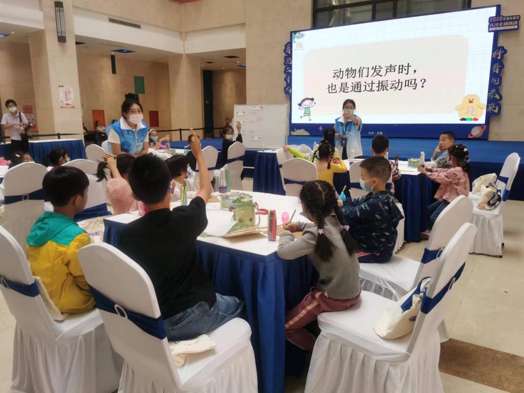 科学教育系主任黄文教授带领科教专业的徐璇和罗雅馨等同学参加了科普日活动,徐璇的科学小课堂《声音是怎样产生的》展示课气氛活跃,深受家长和学生喜欢。