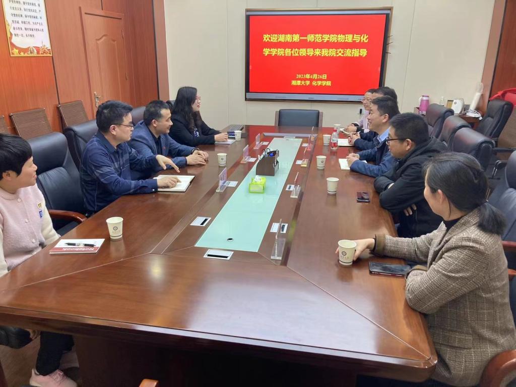 院长助理邹立军、化学系主任陈万平、实验中心主任胡治伟、化学系骨干教师卢艳、实验中心教师皮荷杰,赴湘潭大学化学学院进行参观调研。