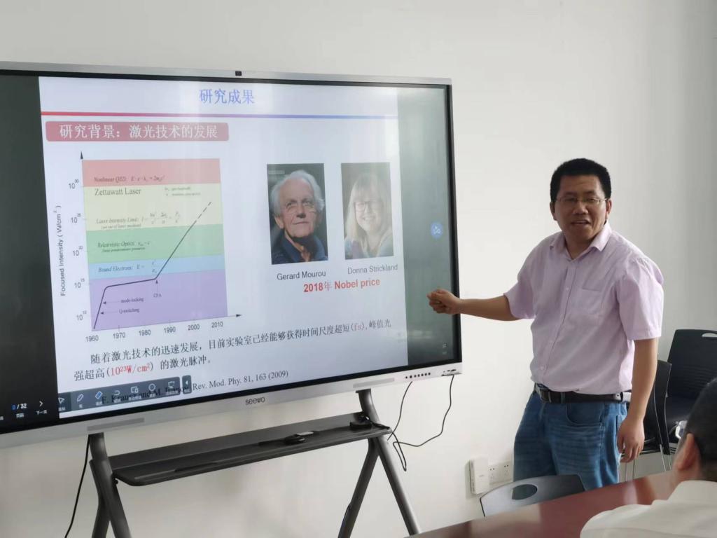 此次会议系物化院物理学专业建设项目所支持的计算物理团队开展的首次学术交流活动,胡师林的学术报告聚焦世界前沿,具有研究深度和极高的学术价值。
