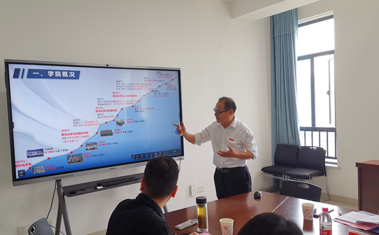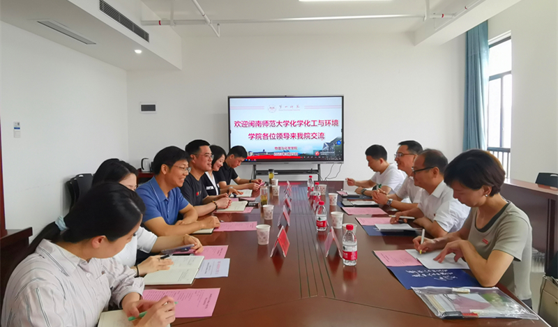 2023年5月26日上午,闽南师范大学化学化工与环境学院党委书记李苗、主持工作的副院长张茂升一行莅临85po 交流座谈。,座谈由院党委书记陈志武主持,学院党委行政班子全体领导参加。