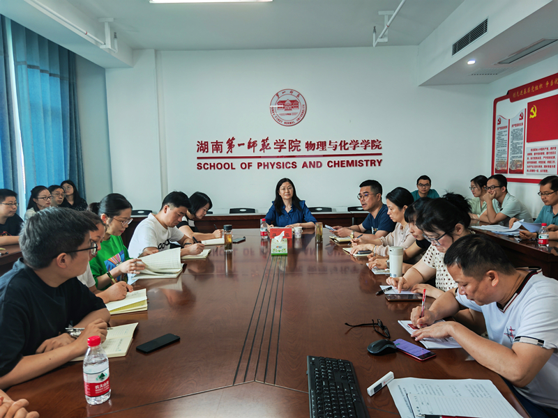 今后党建工作的努力方向。副院长许兰则以“找准定位、全员激活,加速发展,创高水平物化”为题从师资队伍、专业建设、科学研究、人才培养四个方面的现状、优势与短板和改进措施进行了详细的汇报。