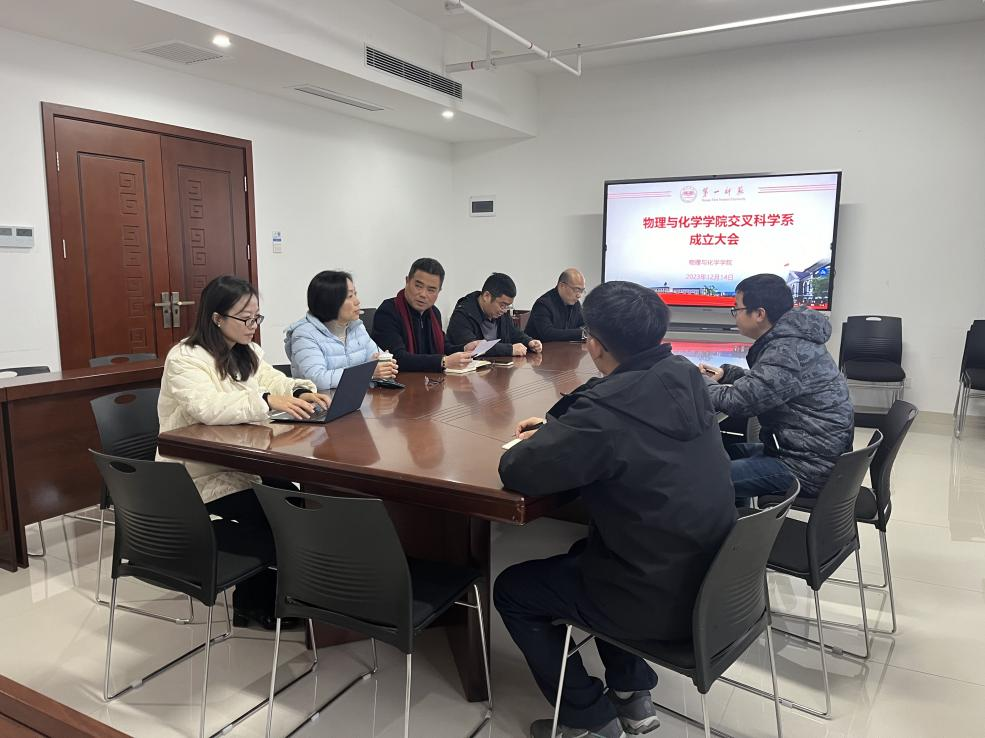交叉科学系主任陈慧、支部书记黄文教授、柔性电子学专业发展负责人李必鑫副教授及交叉科学系的所有教师分别做了表态发言,表示要积极工作,相互学习,在交叉科学系这个新的平台上发挥自己的优势,做好学科建设和专业建设,促使交叉科学系教学和科研齐发展、共进步。此次会议召开,标志着交叉科学系真正成立。