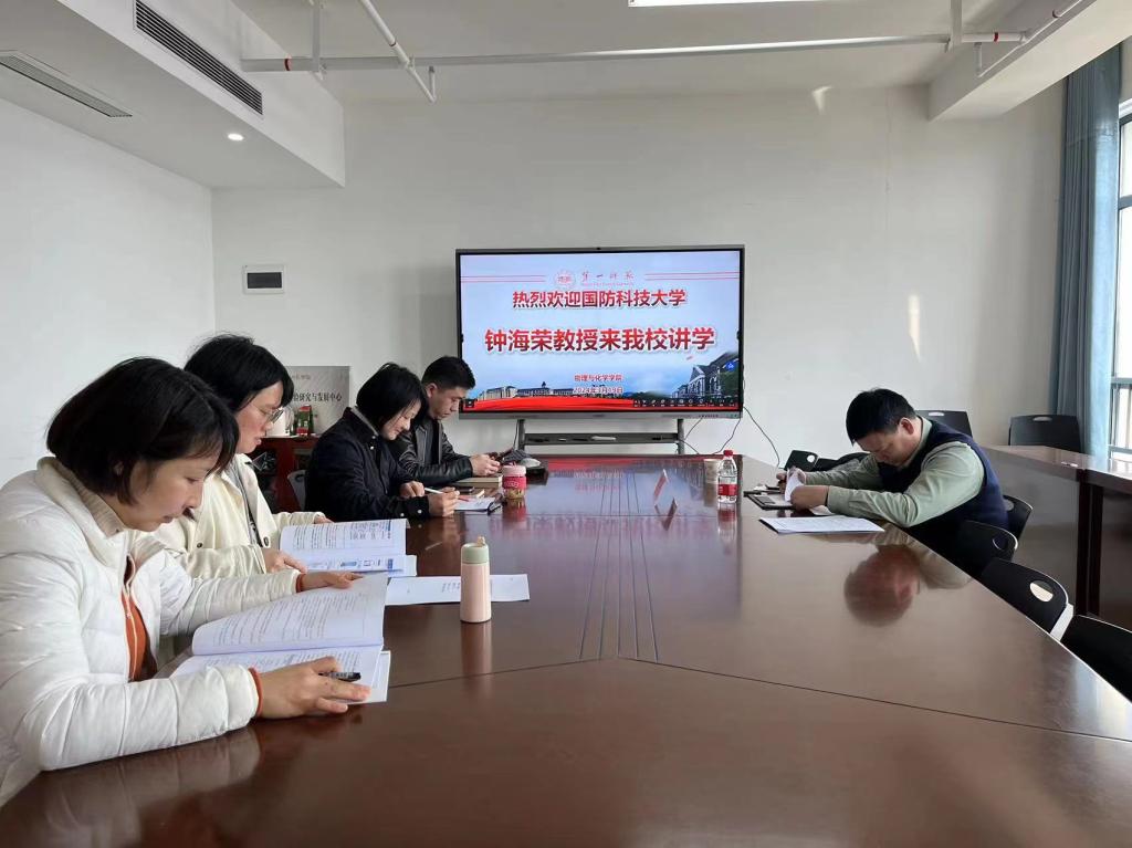 为贯彻落实学校本科教育教学大会精神,进一步加强“两性一度”金课建设,积极申报湖南省思政示范课,3月19日下午,物理系以“大学物理课程思政建设”为主题开展教研活动,邀请国家一流课程与湖南省思政示范课“应用光学”课程主持人、国防科技大学钟海荣教授进行指导。活动由邹立军副院长主持,物理系“大学物理”课程团队教师许兰、邓艳、张诗阳等老师参加。