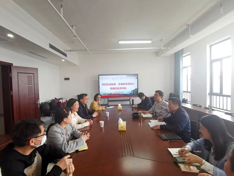 陈志武代表学院致了欢迎辞,对两位老师的加入表示热烈的欢迎。随后陆军、李建亚分别进行了发言,表示将一如既往为学校发展尽心尽力做贡献,竭尽所能为物化院谋发展,全力配合物化院的各项工作安排,不忘初心,立足“新岗位”,做好“传帮带”,帮助指导年轻老师和学生加快成长,全身心投入,履职尽责。