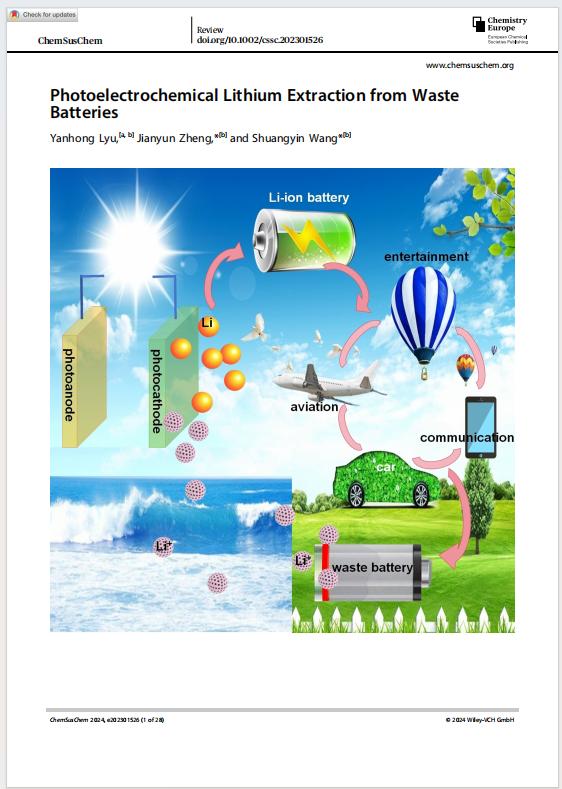 “润之人才计划”骨干教师、化学系吕艳红博士老师在JCR1区期刊、欧洲化学学会杂志《ChemSusChem》上发表题为《Photoelectrochemical Lithium Extraction from WasteBatteries》论文。此文85po