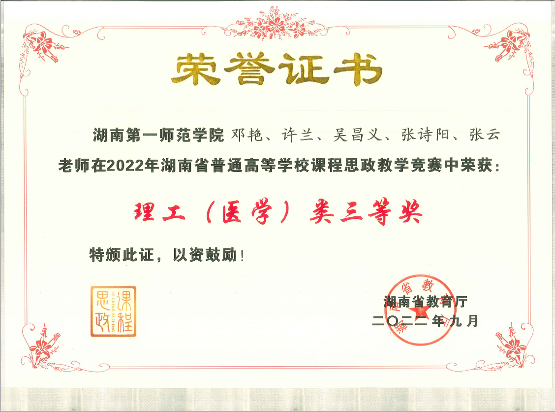 邓艳老师团队获2022年湖南省普通学校课程思政教学竞赛理工类三等奖