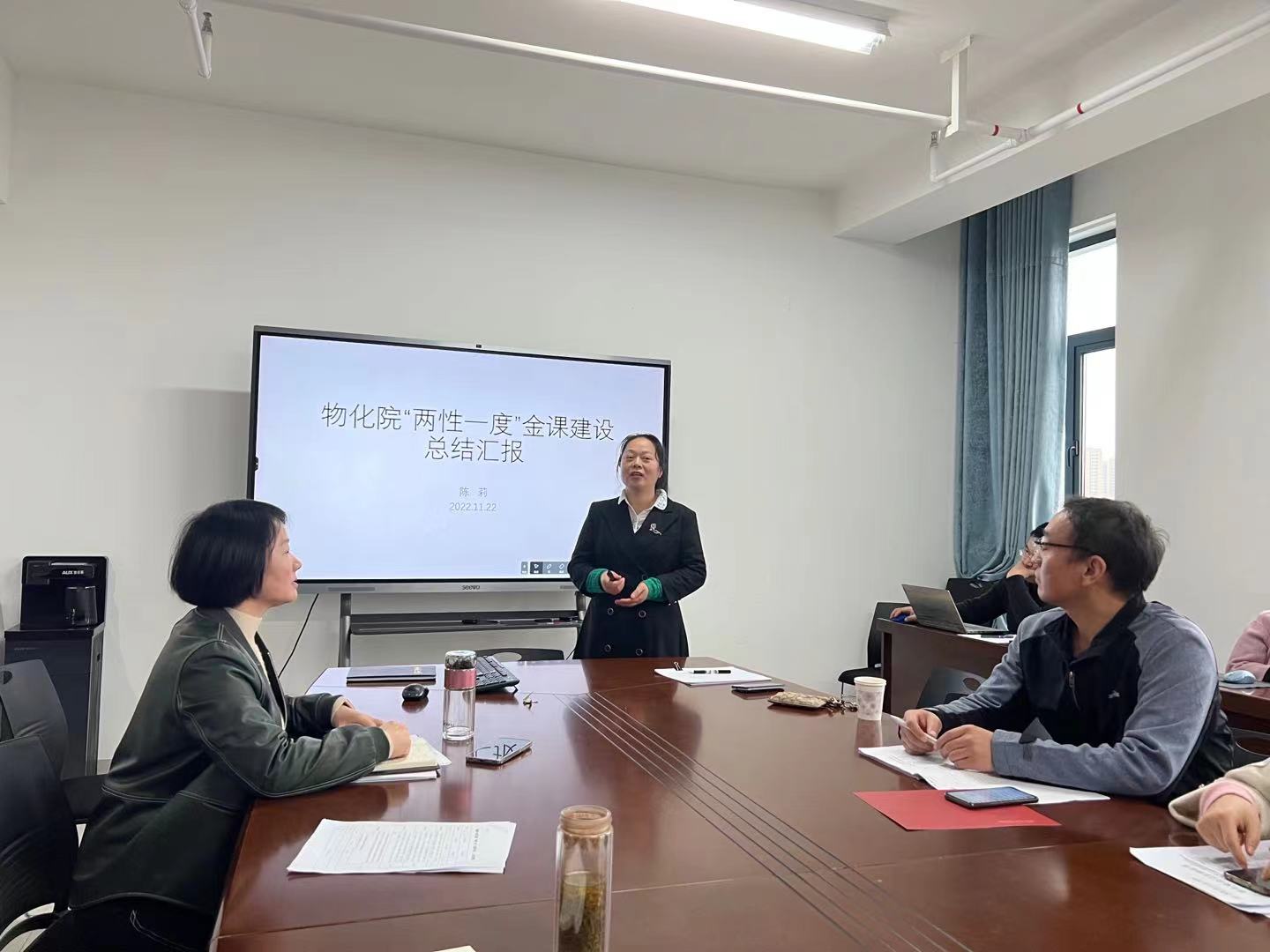 会上,陈志武书记就本院金课评选结果进行了总结,共次11支教学团队或个人进行了金课申报,共推选4门推荐至学校参加校级A类金课评选,3门作为院级B类金课。随后,科学系陈莉老师对本次金课汇报进行了总结。首先介绍了本次金课评选的标准,其次结合本次A类金课从四个方面对课程建设的亮点进行了详细讲解,包含两性一度概念的理解,课程资源建设,课程内容,作业布置。