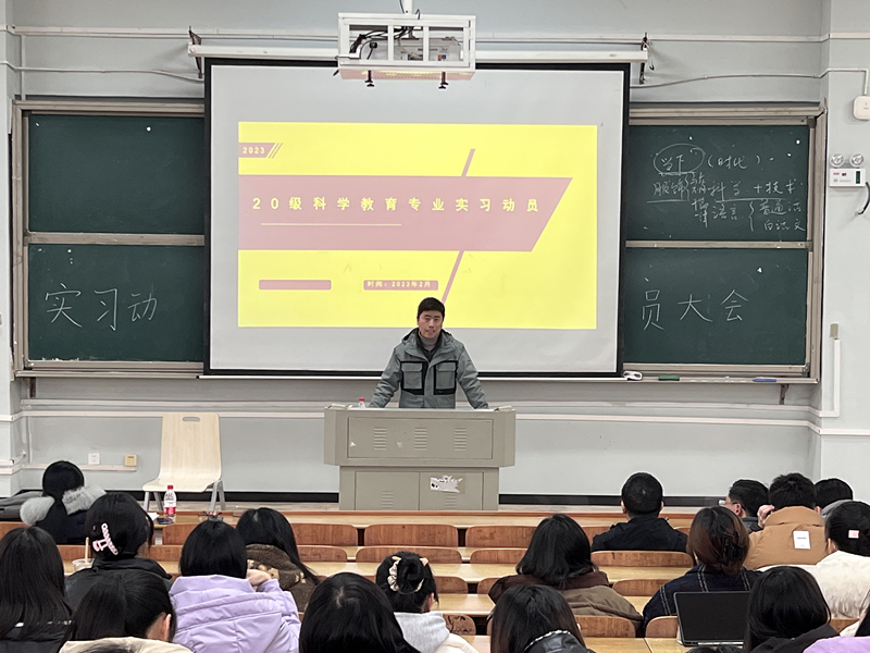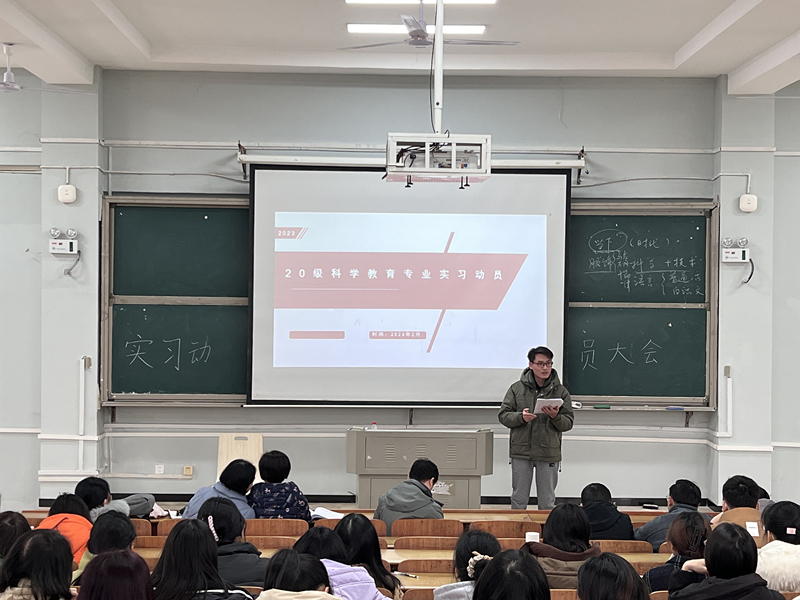 院教育实习动员大会在怀中南206举行,院长助理邹立军、科学教育系主任黄文、副主任江华军、实习指导老师和2020级科学教育专业全体学生参加,会议由江华军主持。
