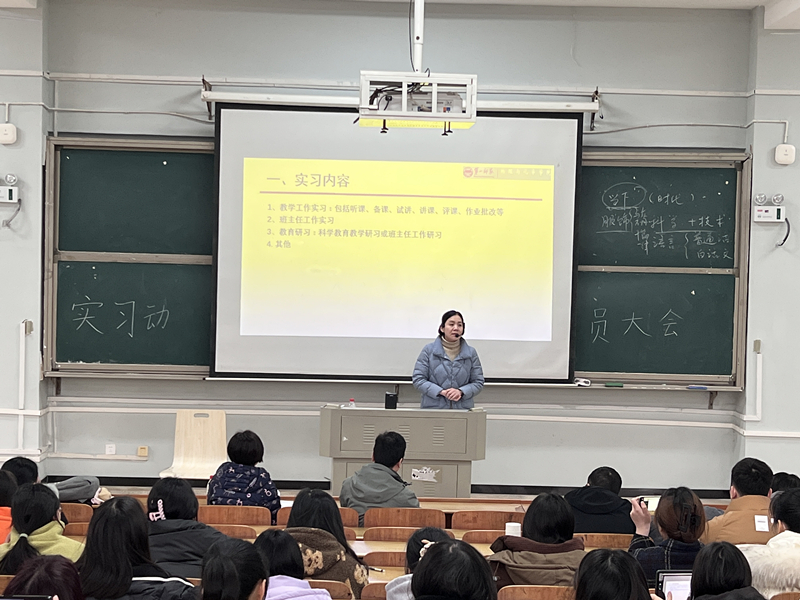 首先,江华军从实习的目的和意义、教学工作实习、班主任工作实习、教研工作实习、成绩评定五个方面,对本次教育实习的实施方案进行了总体说明。接着,黄文对实习单位的具体安排和规范撰写教育研习材料进行补充说明。随后,庄远红从实习内容和实习中常见问题开展教育实习经验分享。她从听课、备课、试讲、讲课、评课、作业批改等各个环节指导学生完成如何教学工作实习,强调要在实习实践中积累材料完成科学教育教学研习及班主任工作研习;并解答学生普遍关心的实习学校、指导老师、教育与教学工作的平衡等问题。