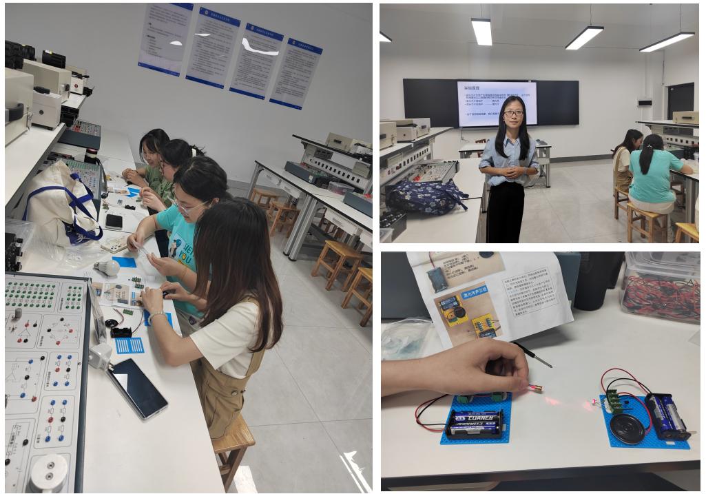 青年教师陈慧博士在玉衡南楼107开展了本学期第三场实验室“开放日”活动,22级物理班的同学积极参与了本次活动。本次实验室开放日的主题为“激光传声实验”。陈慧老师首先讲解了激光传声的原理是由亮灭形式传递出去。并解释由于视觉暂留现象,我们观察不到激光的亮灭的情况。随后展示了发射端材料和接收端材料。接着,演示如何通过简单的元器件(光敏电阻、三极管、色环电阻、芯片等)搭建激光传声电路。最后,同学们在现场利用简单的实验材料,成功搭建了激光传声实验装置。