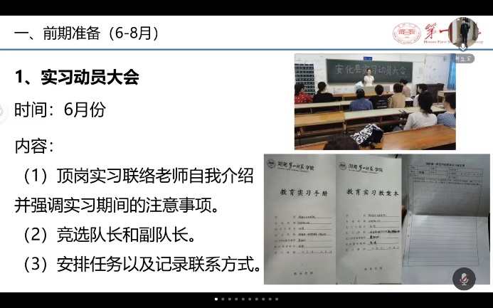2021级六年制公费定向师范生实习动员大会以腾讯会议形式召开线上会议,副院长邹立军和化学系苏琼老师参加会议;会议由教科办主任谌鸽主持。