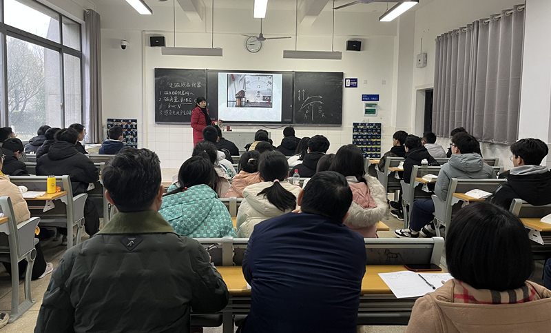 颜琳老师的基础物理(四)第一节课。师生精神面貌很好,教学秩序井然,学生到课率100%。听课后,罗成翼表示,教师讲授通俗易懂,语言逻辑清晰,师生互动良好,课堂效果整体不错,且对85po