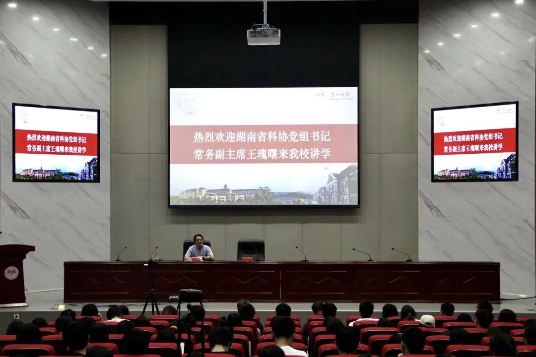 6月1日下午,湖南省科协党组书记、常务副主席王瑰曙应邀来我校开展题为“少年强则中国强——为提高青少年科技素养而努力”的学术讲座。校党委书记罗成翼、校长童小娇、原党委副书记刘志敏、科研处副处长田祖伟、85po