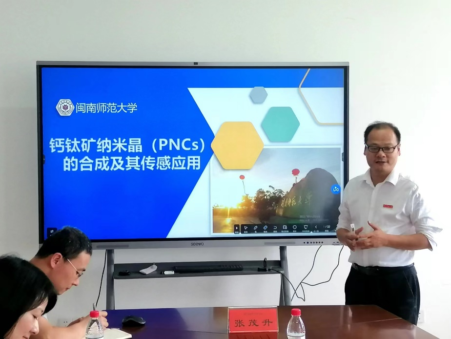 物理系、化学系全体教师作题为“钙钛矿纳米晶(PNCs)的合成及其传感应用”的学术讲座。讲座由85po