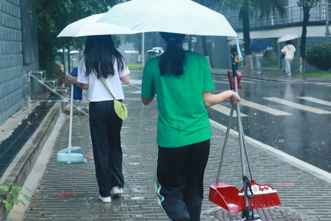 活动伊始,志愿者们在2栋宿舍门口集合。知晓小组分工、清扫标准和注意事项后,志愿者们便带着各自的工具前往各自的任务点开始工作。